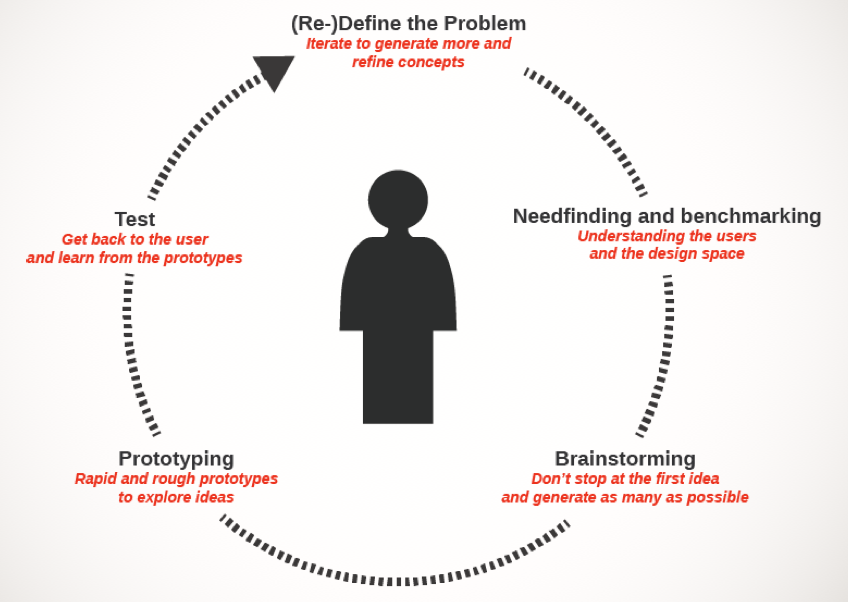 Another feature of Design Thinking, which is special to it, is cyclicity. By going through the process multiple times, not only does it maximize student learning, it maximizes project learning and the quality and depth of user insights, to ensure breakthrough solutions. The iterative nature assures that teams are not stuck on one idea for too long and that ideas are being continuously validated with end users through rapid prototyping and testing. Fail early and fail often so you can succeed sooner, is one of the key mantras for our students.