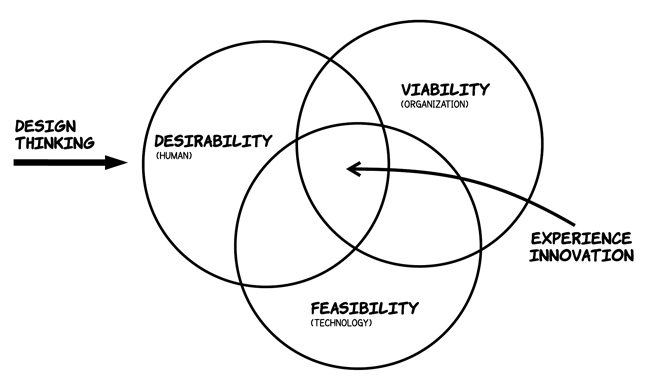 Without constraints the design process cannot take shape. In fact, Design Thinking laid the foundations of its success in the aptitude of the actors to accept with enthusiasm these constraints rather than seeing them as obstacles to innovation. In order to have a successful design process you need to keep in mind that exploration is governed by three basic constraints from which organizations cannot escape: desirability, viability and feasibility.